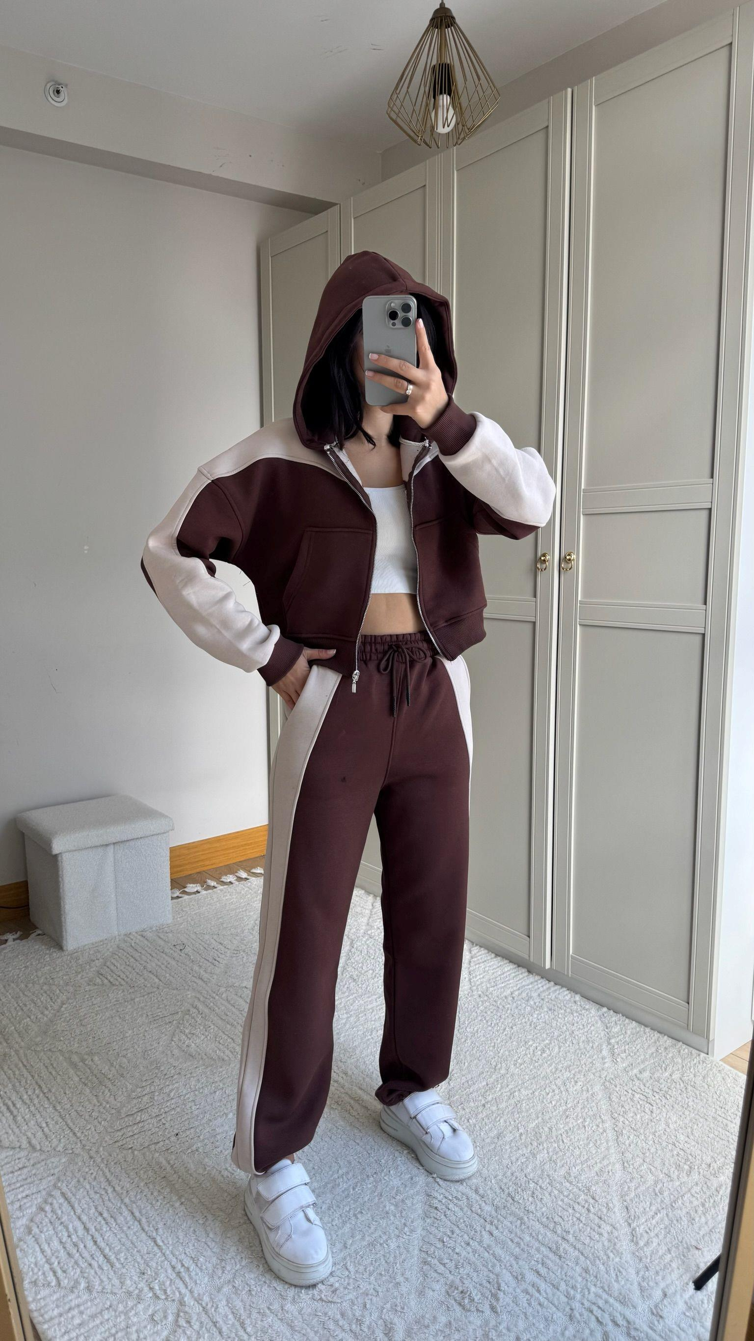 Allie Şerit Detay Bel Lastikli Takım 2625 ACI KAHVE