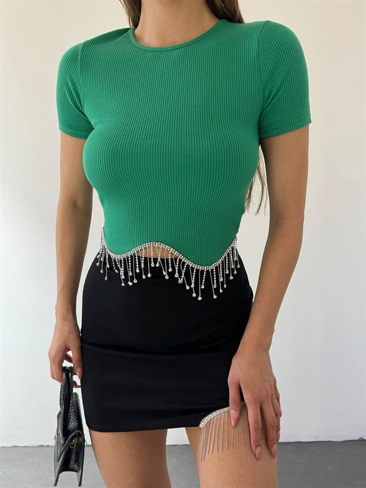 Altı Damla Taşlı Bürümcük Bluz 10497 YEŞİL
