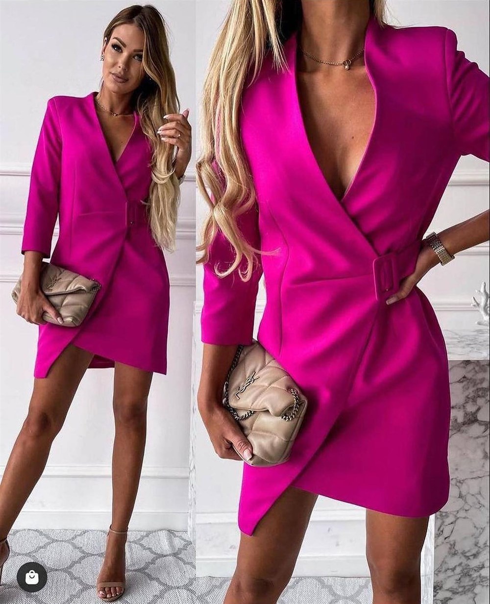 Asimetrik Kesim Kemerli Elbise PEMBE