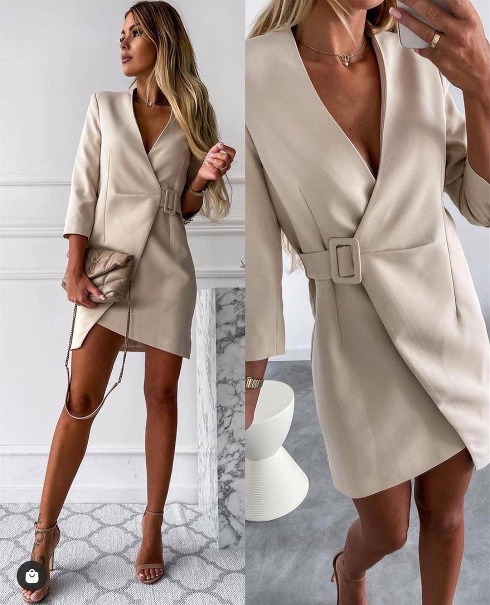 Asimetrik Kesim Kemerli Elbise TAŞ