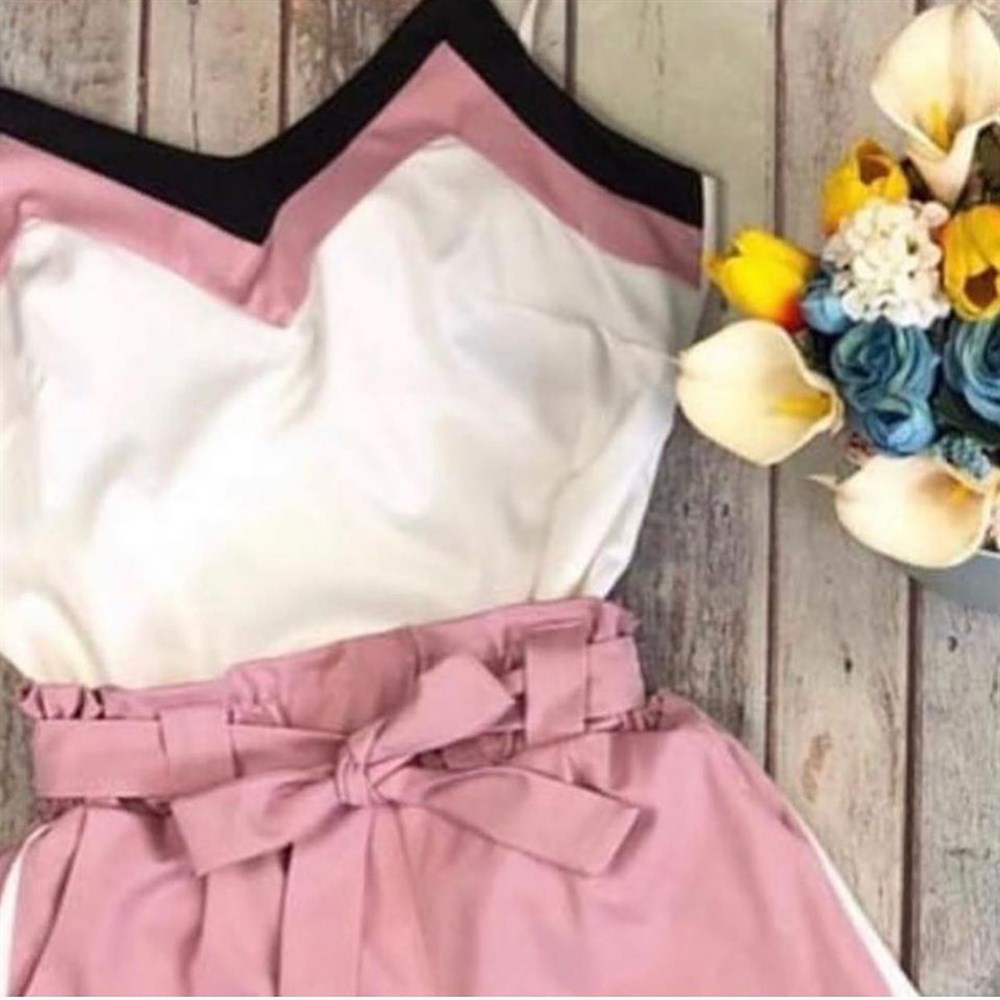 Askılı Bluz Şort Takım Pudra