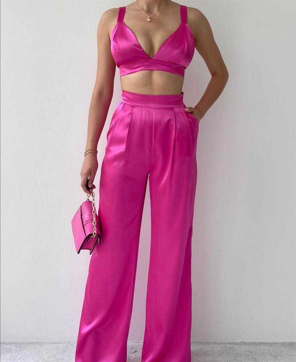 Bağlamalı Büstiyerli Saten Takım 4188 FUŞYA