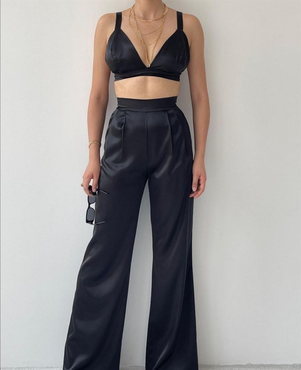 Bağlamalı Büstiyerli Saten Takım 4188 SİYAH