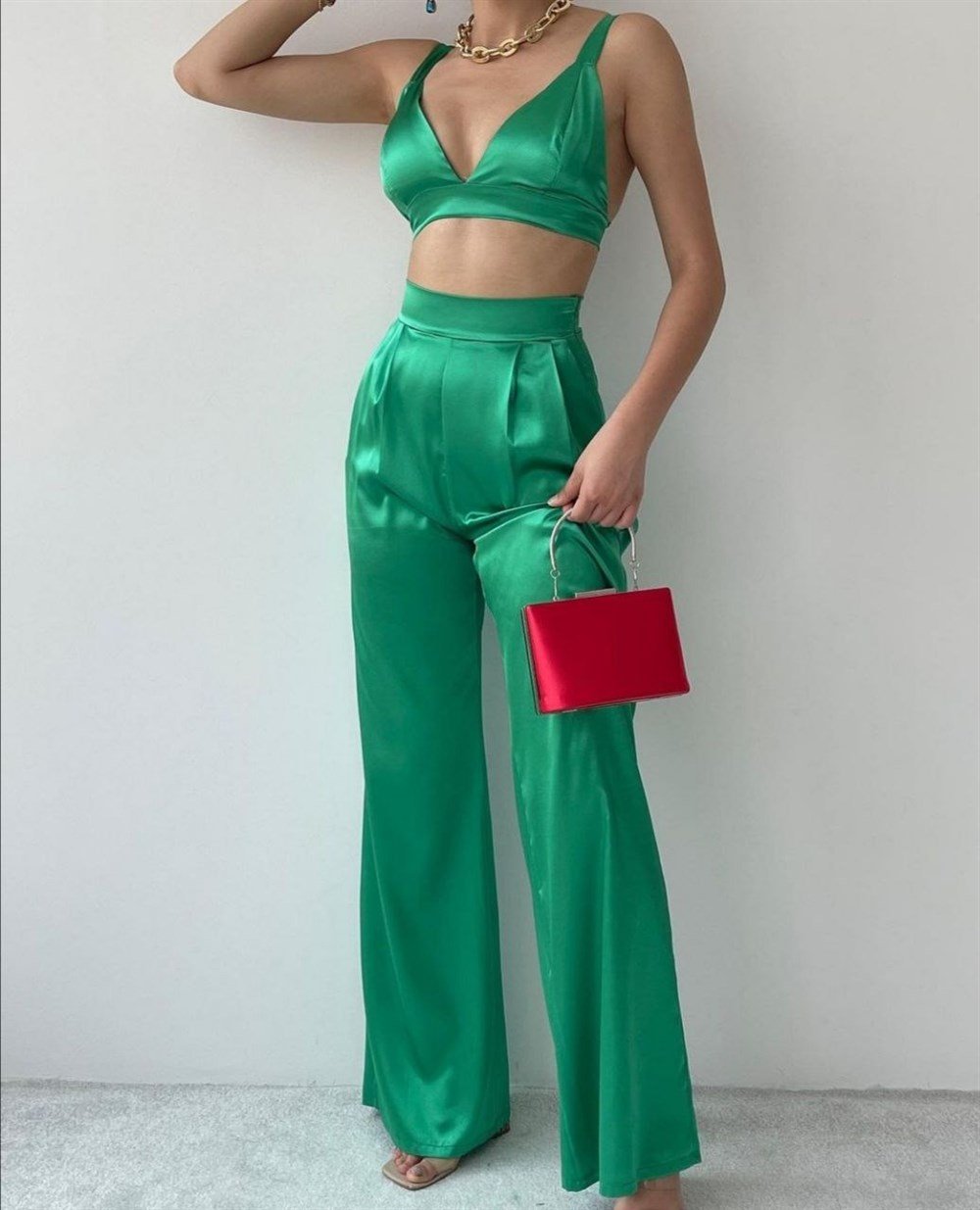 Bağlamalı Büstiyerli Saten Takım 4188 YEŞİL