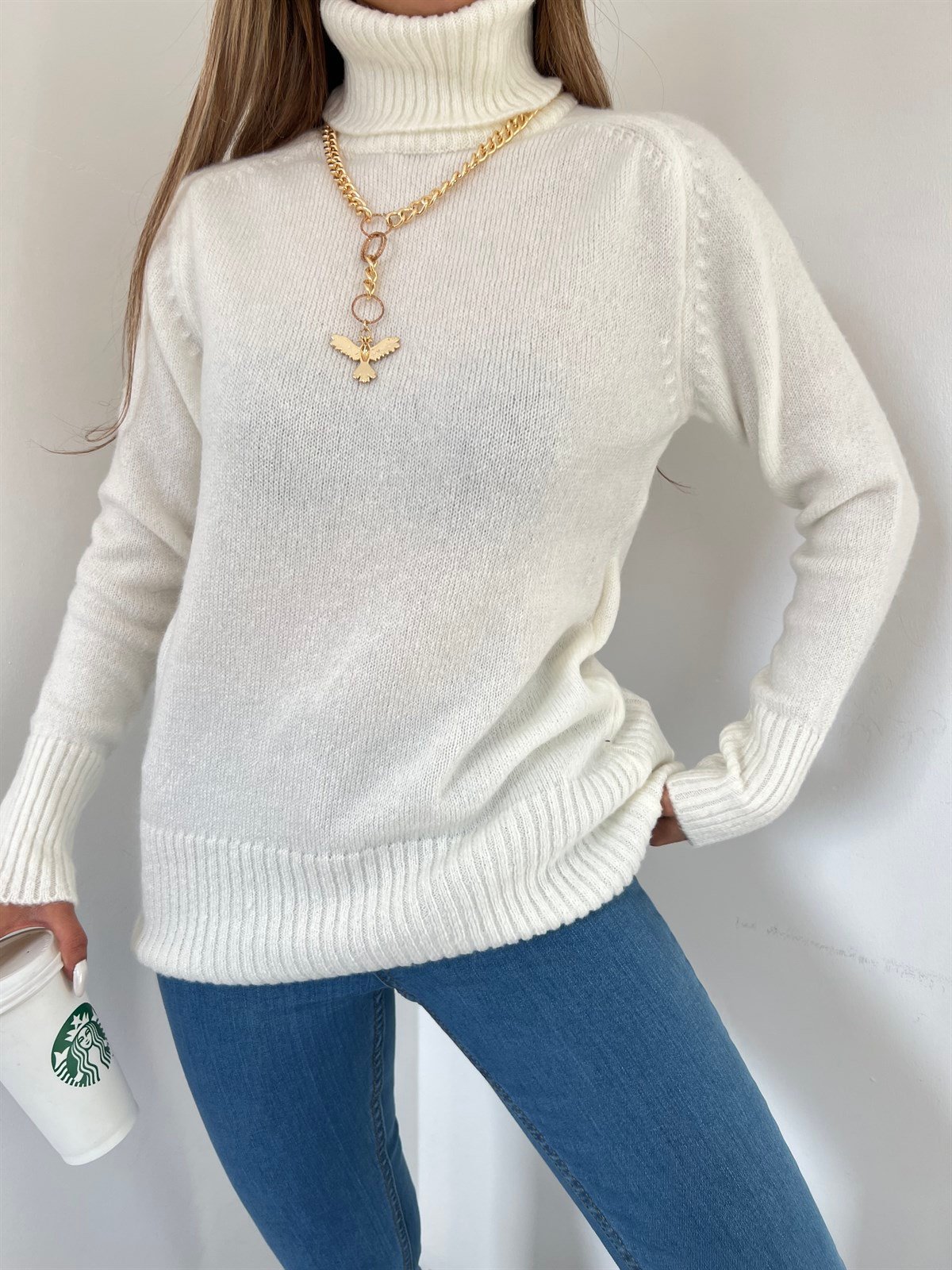 Balıkçı Yaka Düz Triko Kazak E-125 EKRU