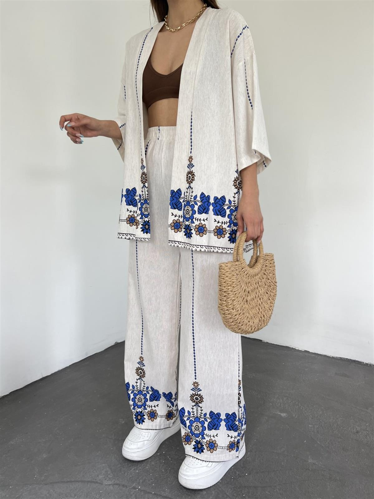 Baskılı Kimona Takım 01176 TAŞ RENGİ