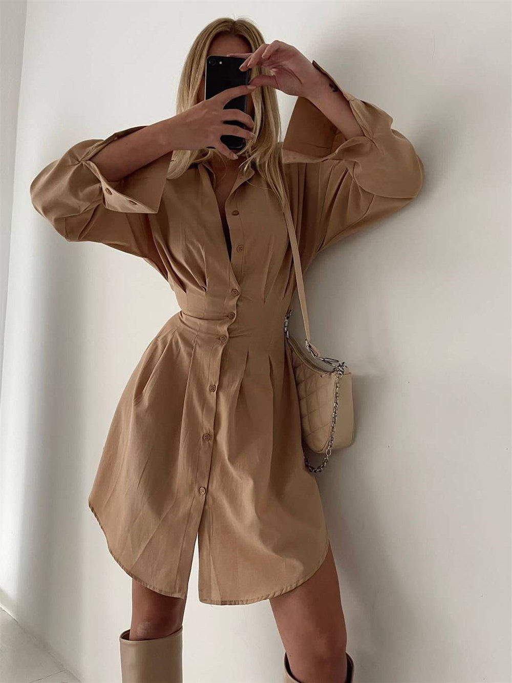 Bel Lastikli Gömlek Elbise TAŞ