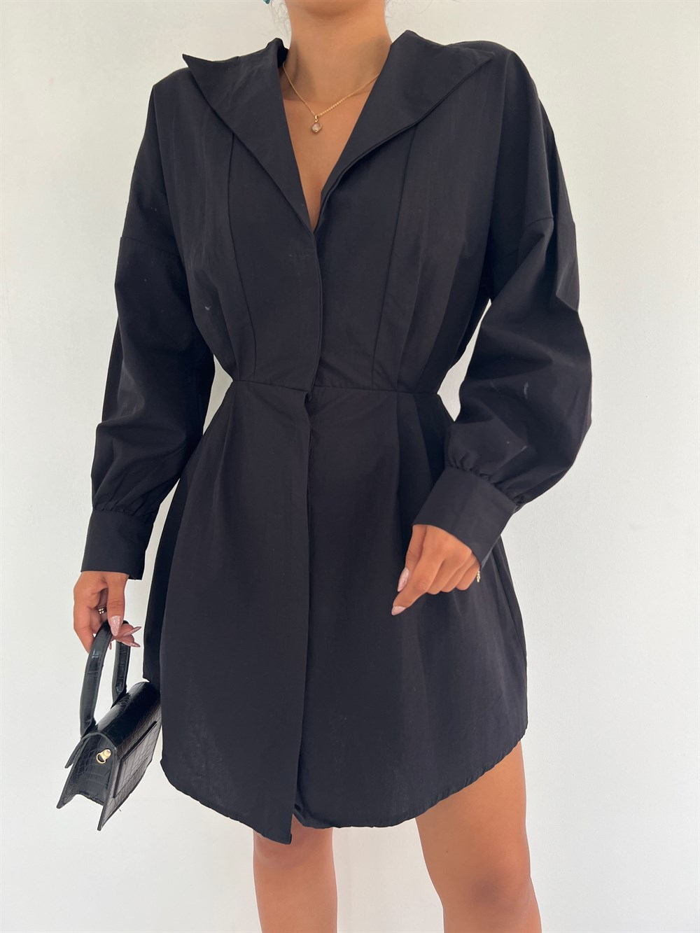 Beli Lastik Detaylı Gömlek Elbise