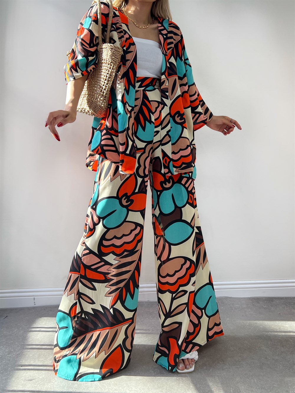 Bol Paça Desenli Pantolon 0922 KAHVERENGİ