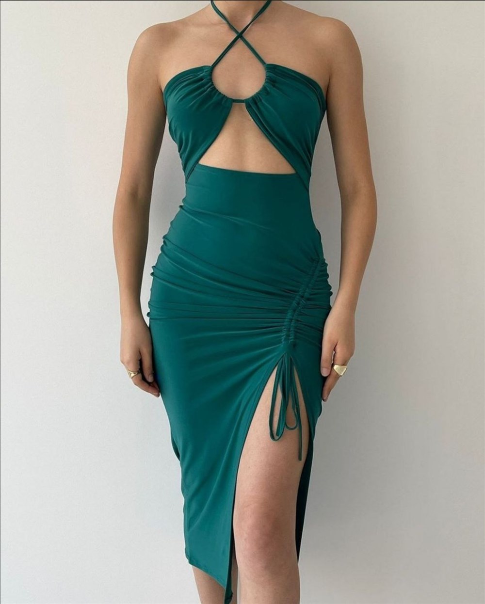 Boyundan Bağlamalı Ön Tünelli Midi Elbise 4164