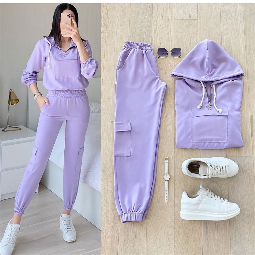 Cep Detay İkili Takım Lila