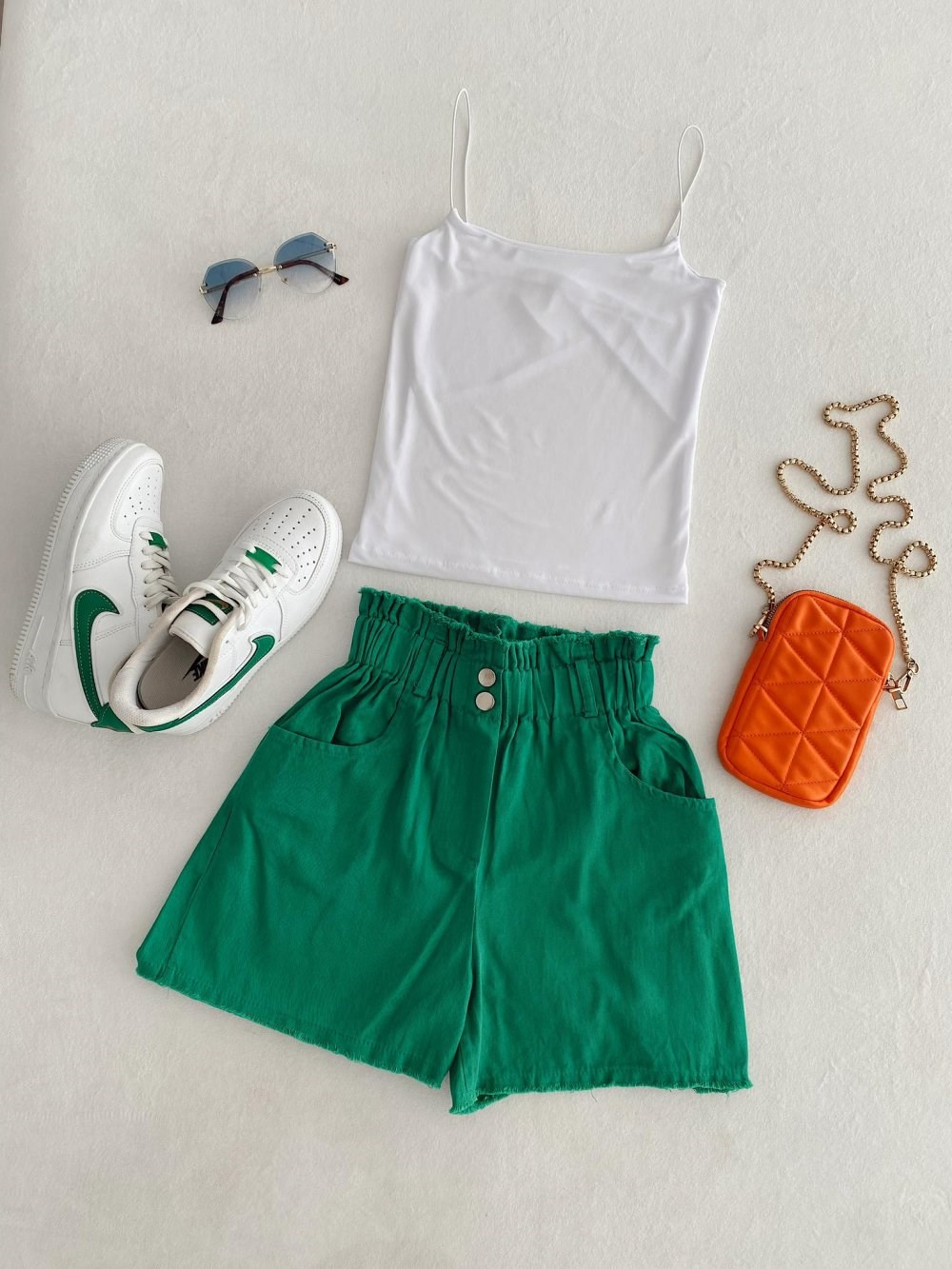 Çift Düğmeli Paça Püsküllü Şort 3903 YEŞİL