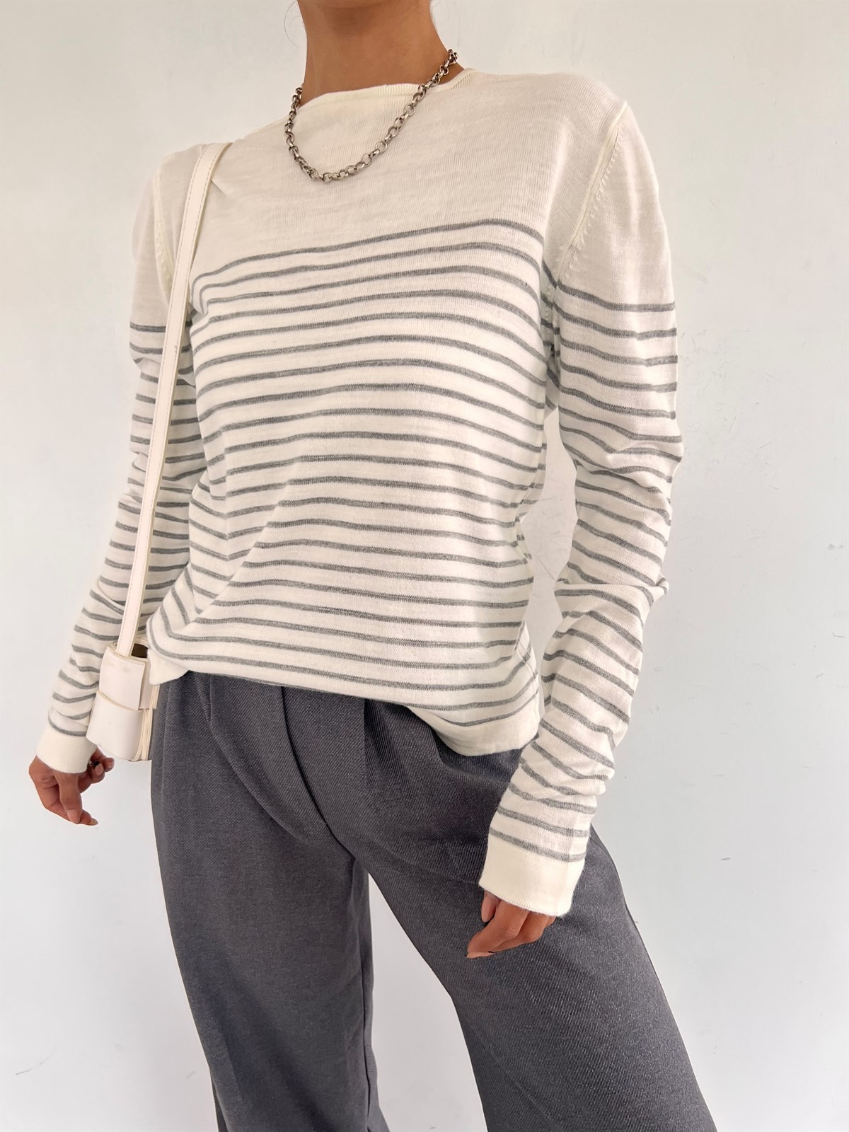 Çizgili Triko Kazak 2292 EKRU