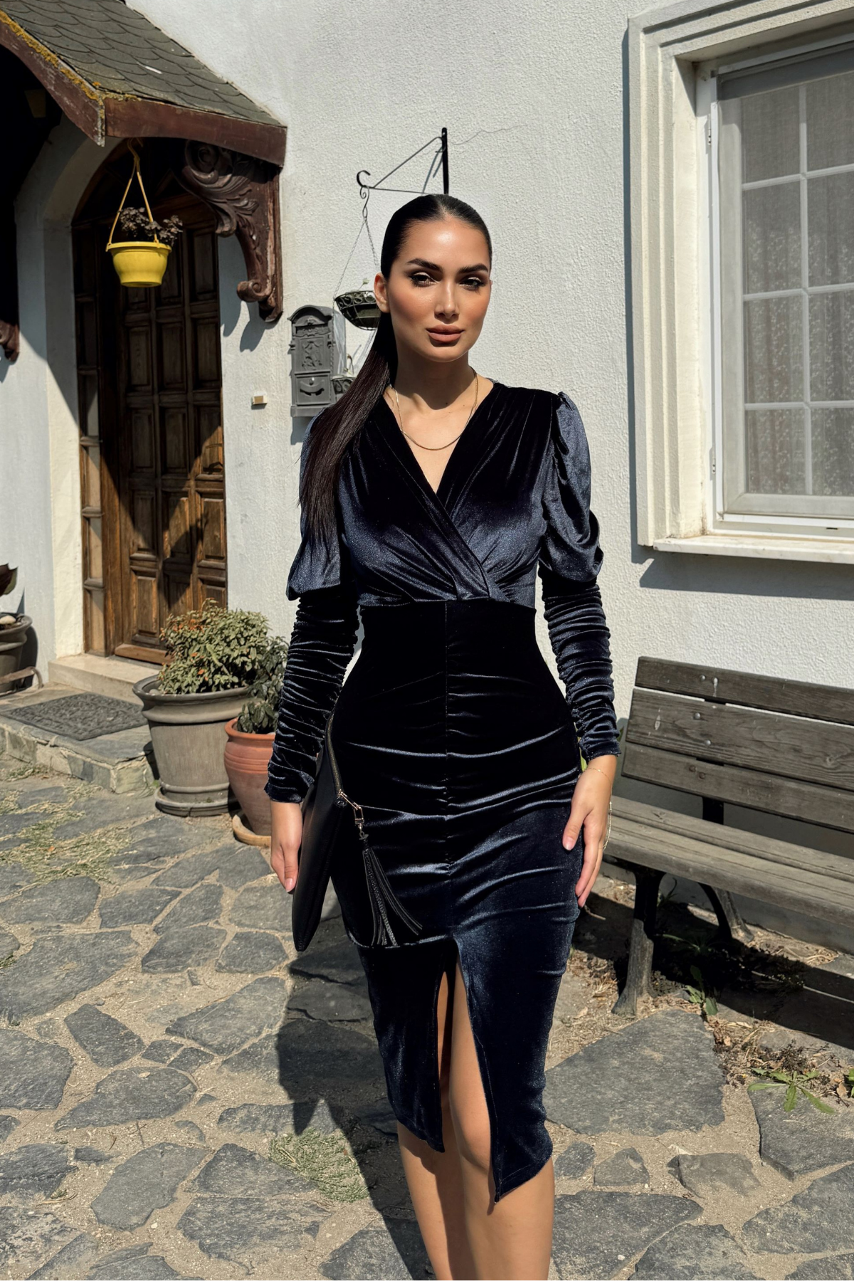 Defy Tasarım Kadife Elbise 582022 ANTRASİT