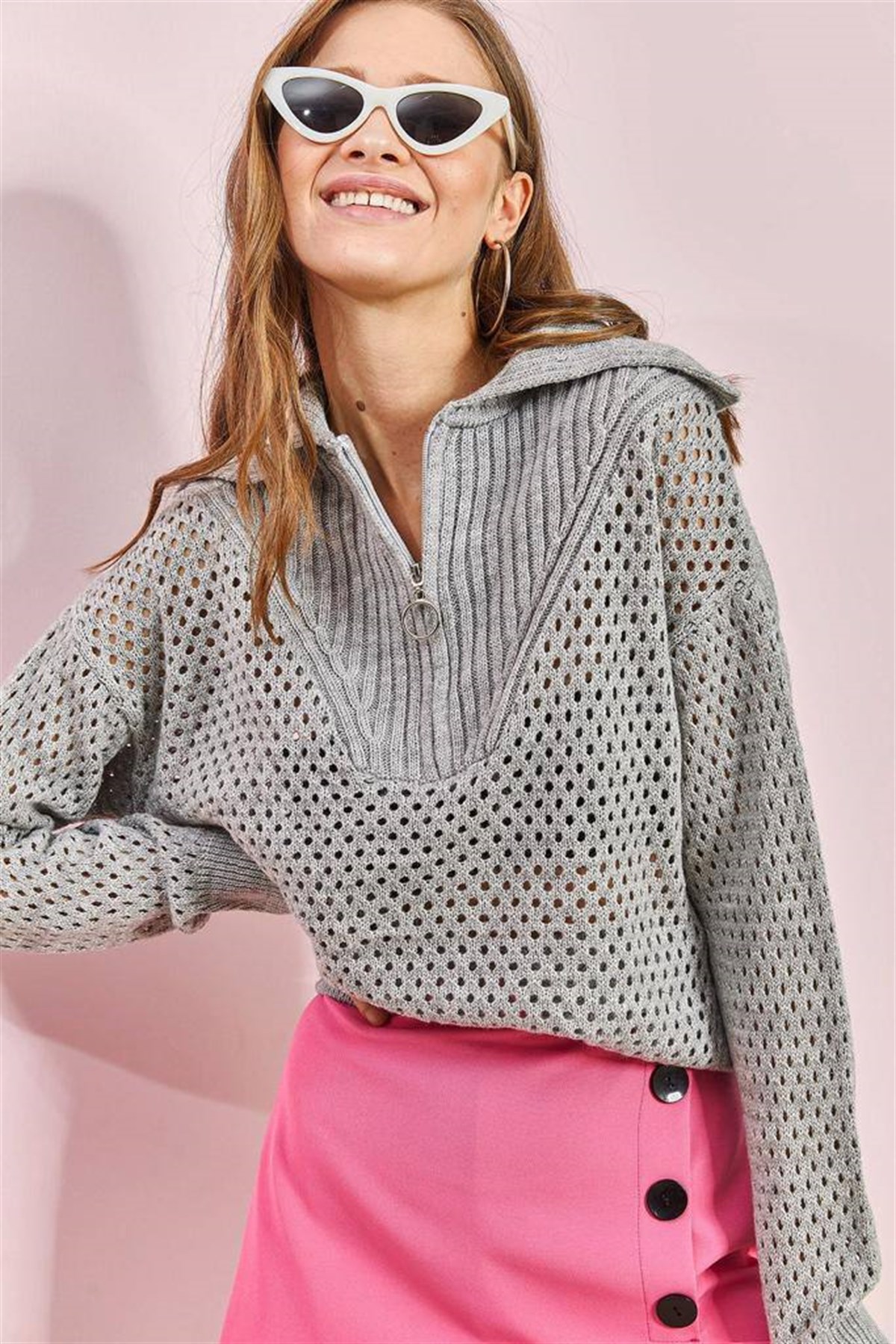 Delikli Fermuar Detay Kazak 22366