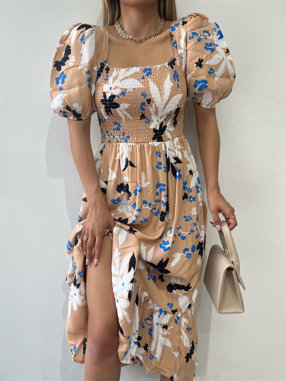 Desenli Gipeli Karpuz Kol Elbise 6703 TAŞ