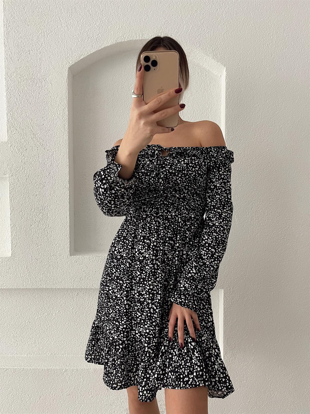 Dokuma Gipeli Elbise SİYAH
