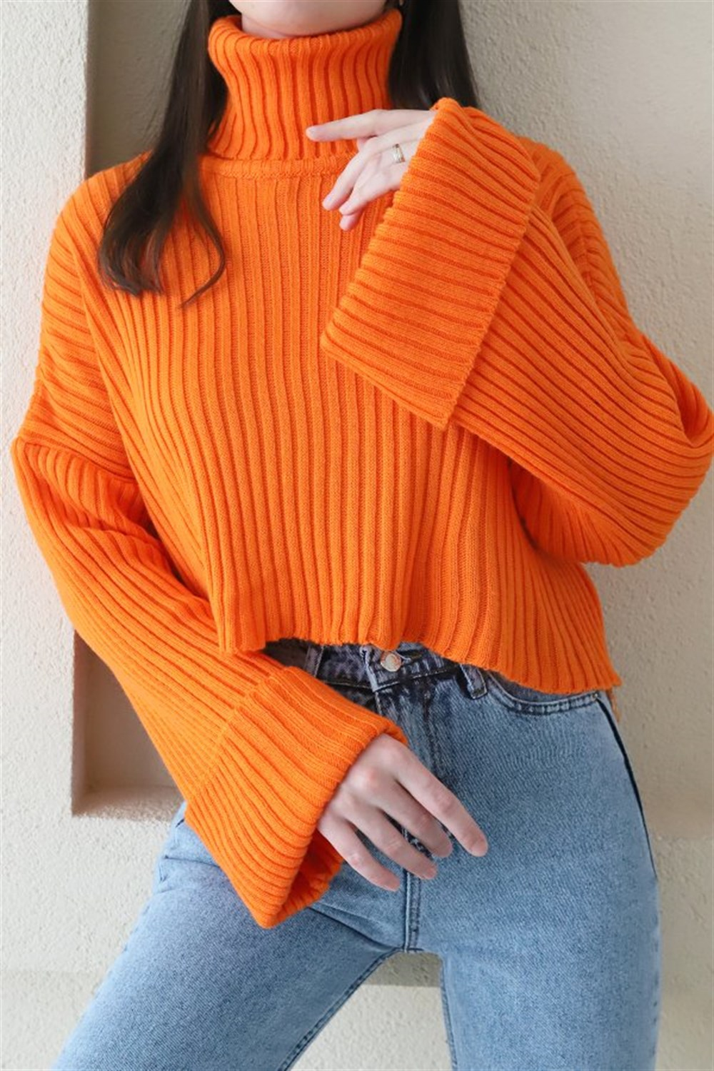 Double Kol Triko Kazak TURUNCU
