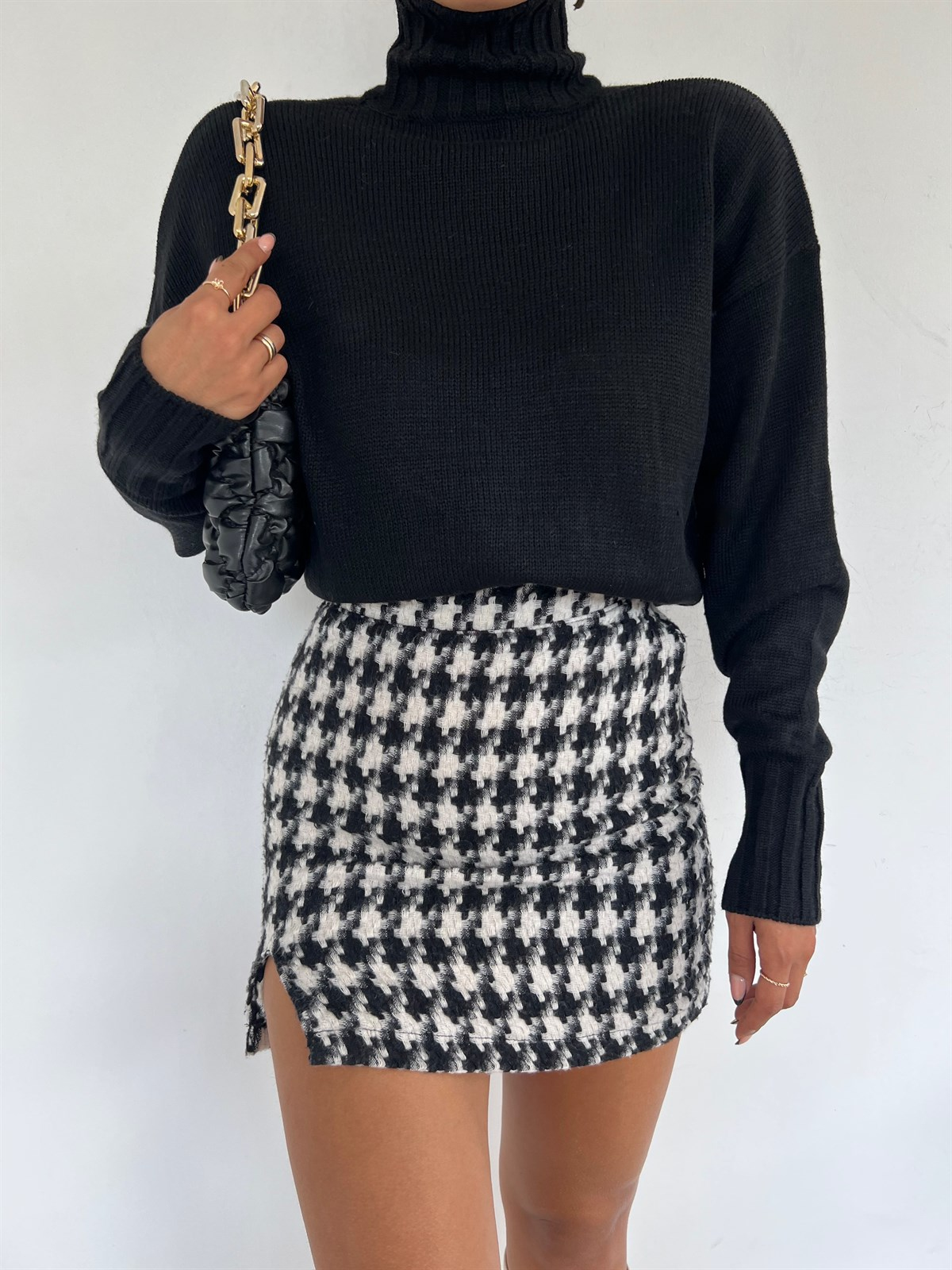 Düz Triko Boğazlı Kazak 63659 SİYAH