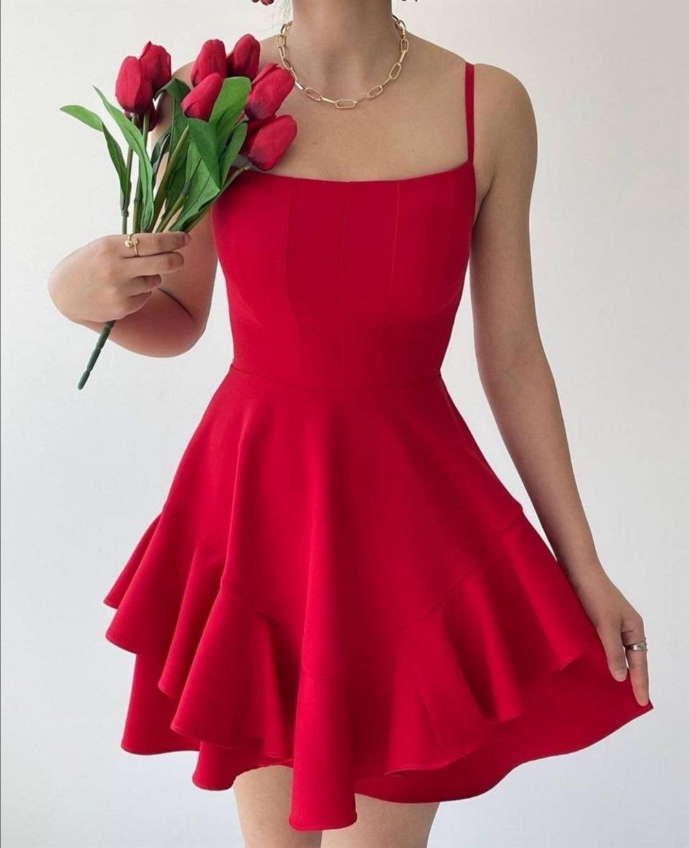 Eteği Fırfırlı İp Askılı Elbise 6446