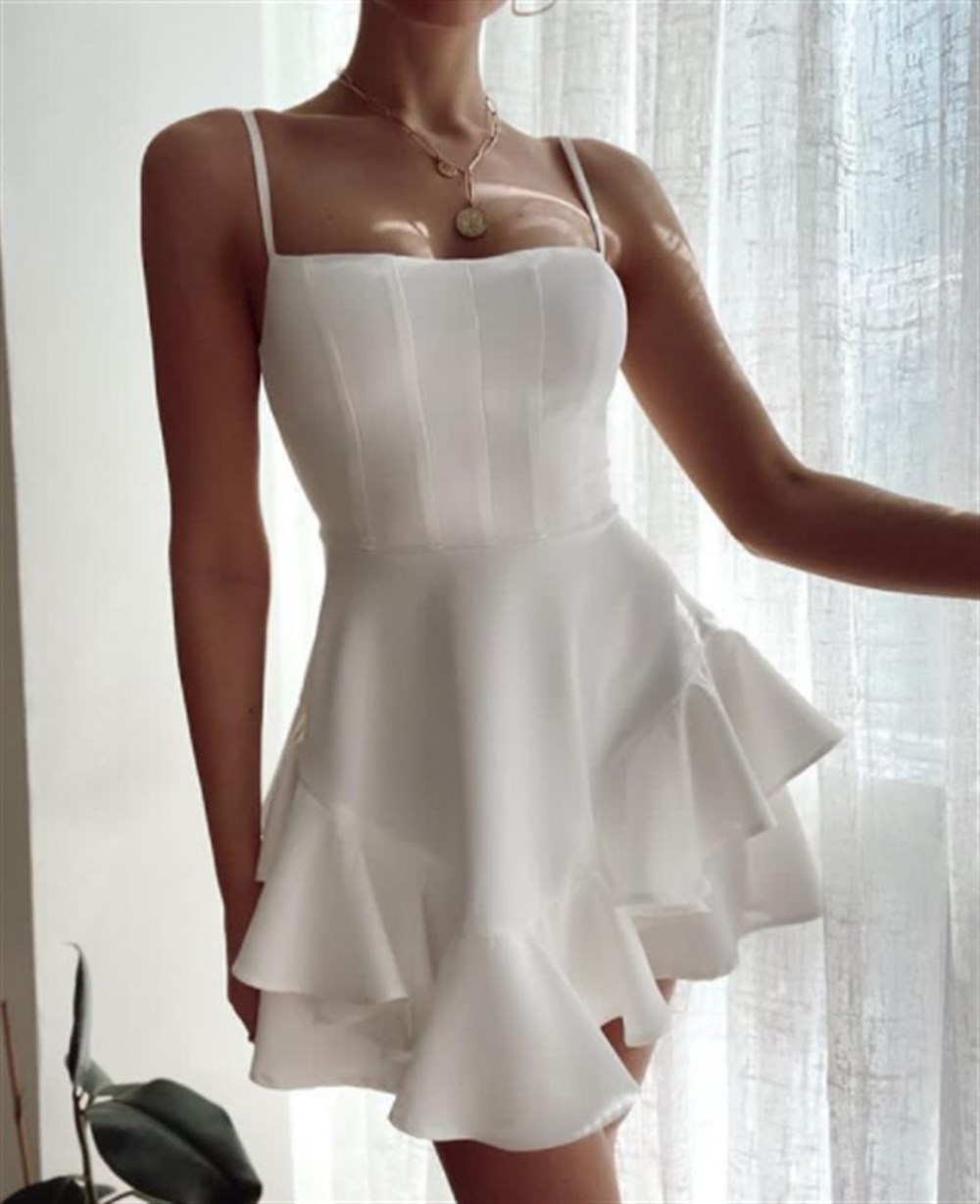 Eteği Fırfırlı Mini Elbise BEYAZ