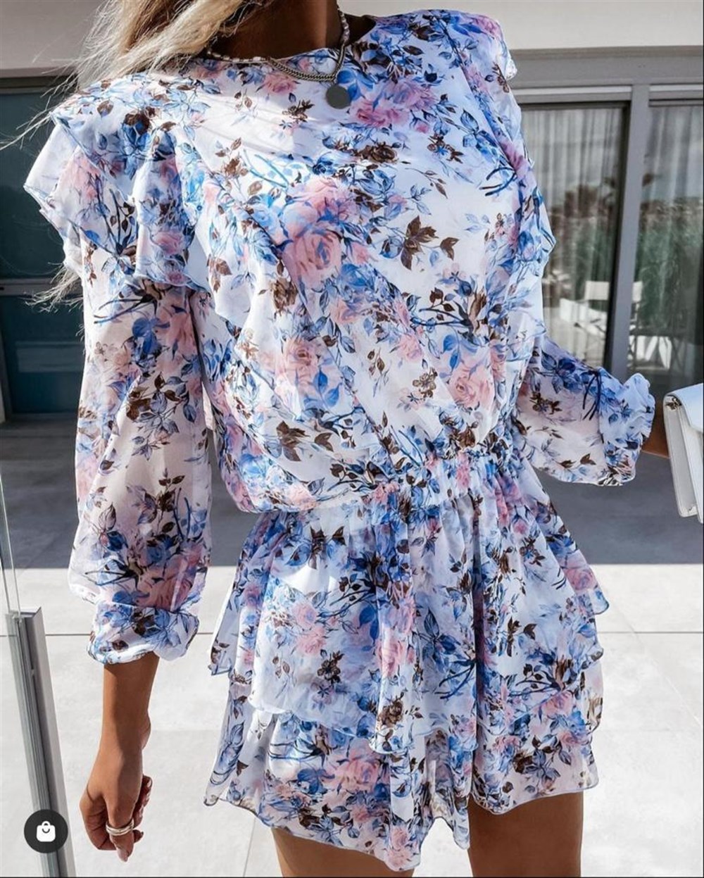 Fırfırlı Çiçekli Elbise BEBE MAVİSİ