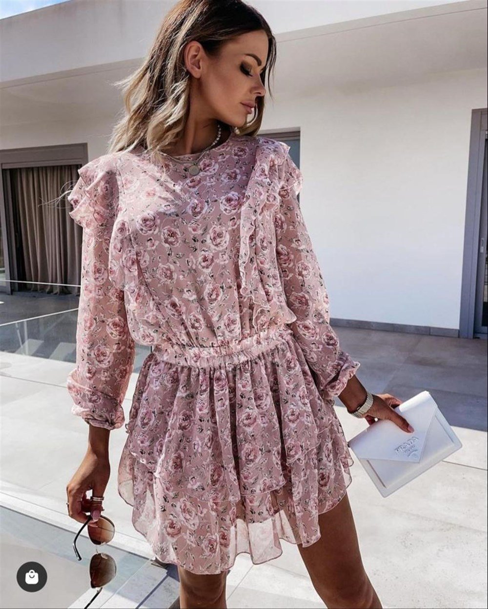 Fırfırlı Çiçekli Elbise GÜL KURUSU