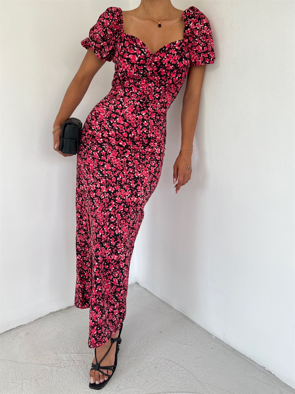 Göğüs Büzgülü Okyanus Elbise 2866 NAR ÇİÇEĞİ