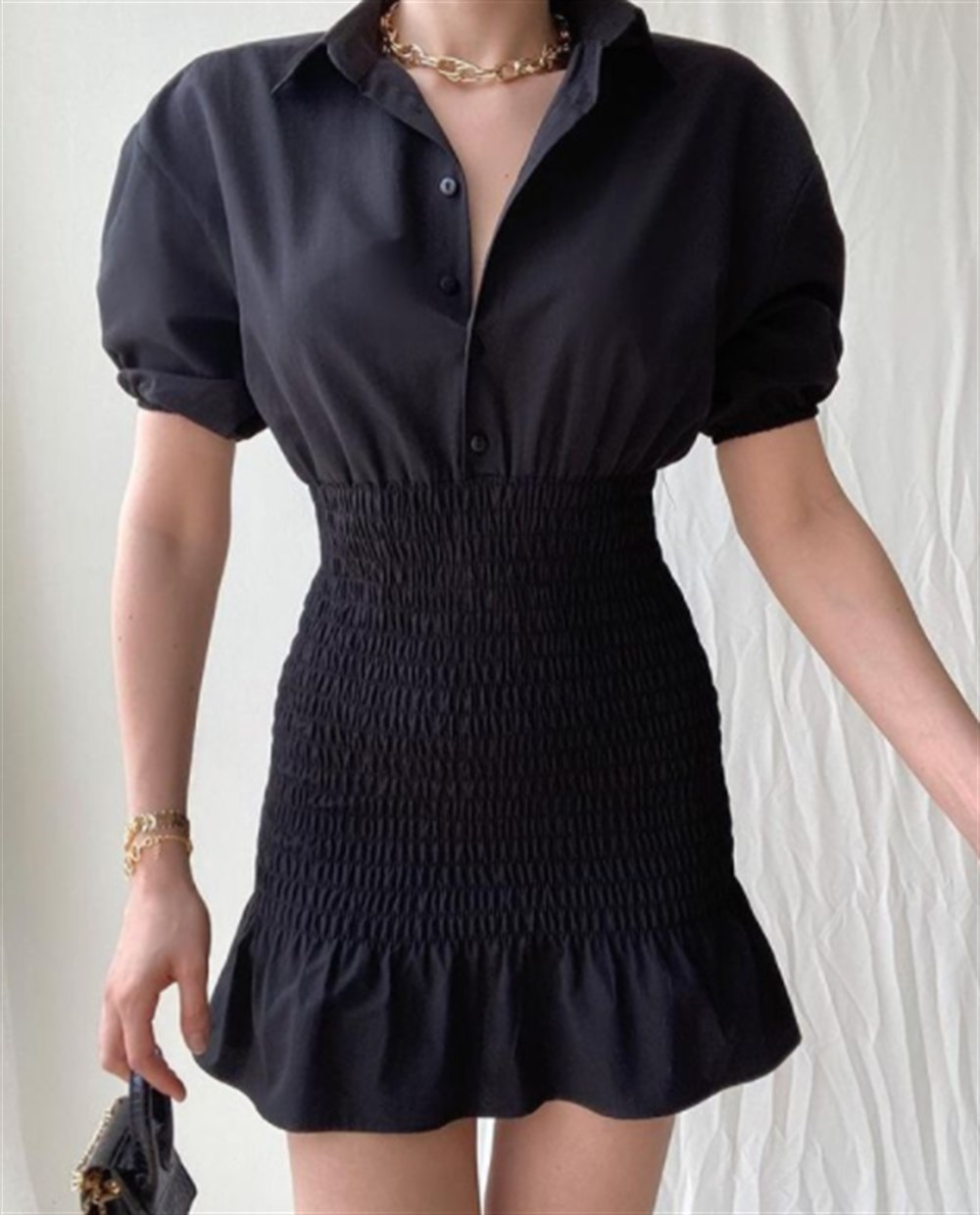 Gömlek Yaka Eteği Gipeli Elbise SİYAH