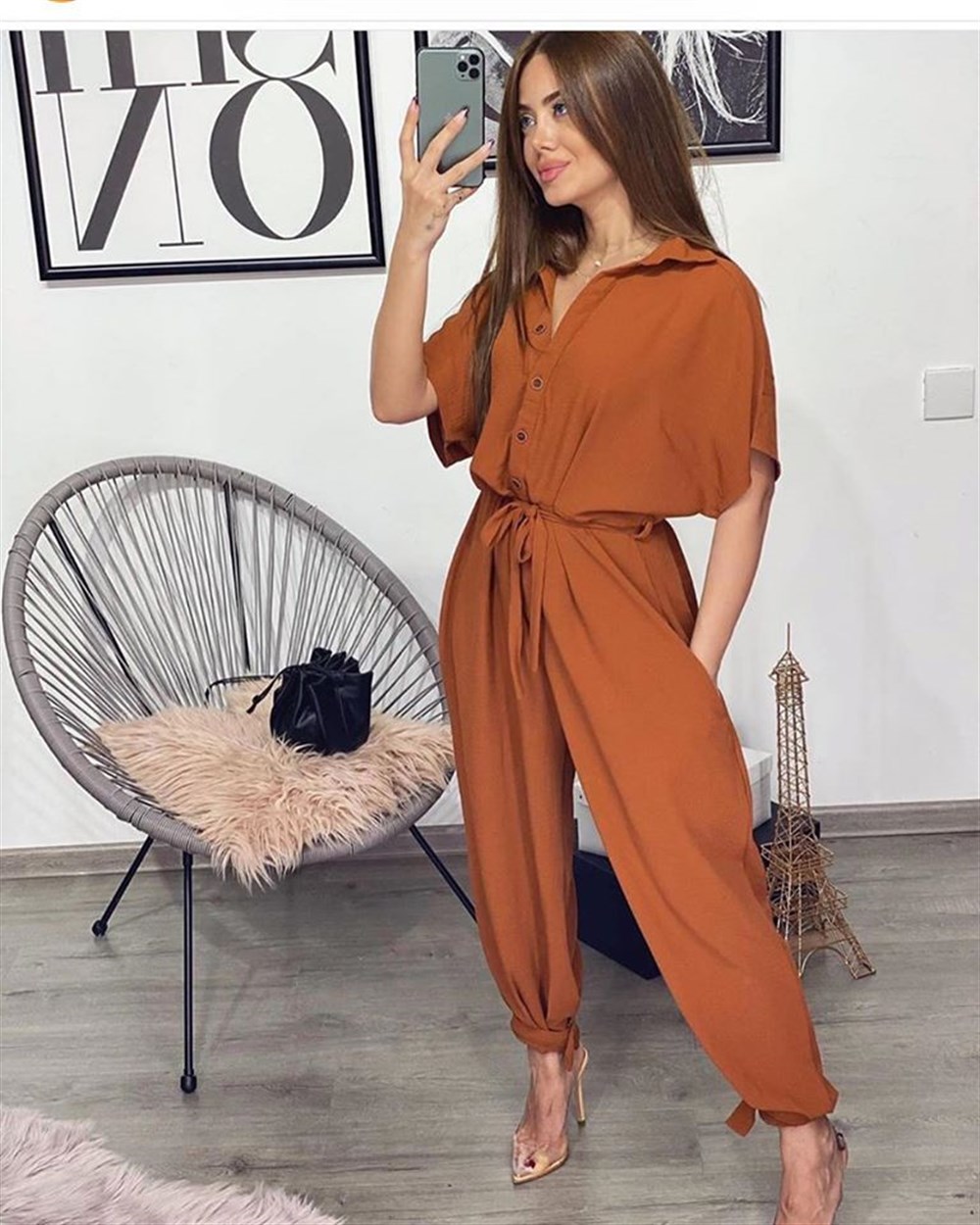 Gömlek Yaka Ön Düğmeli Tulum Kiremit