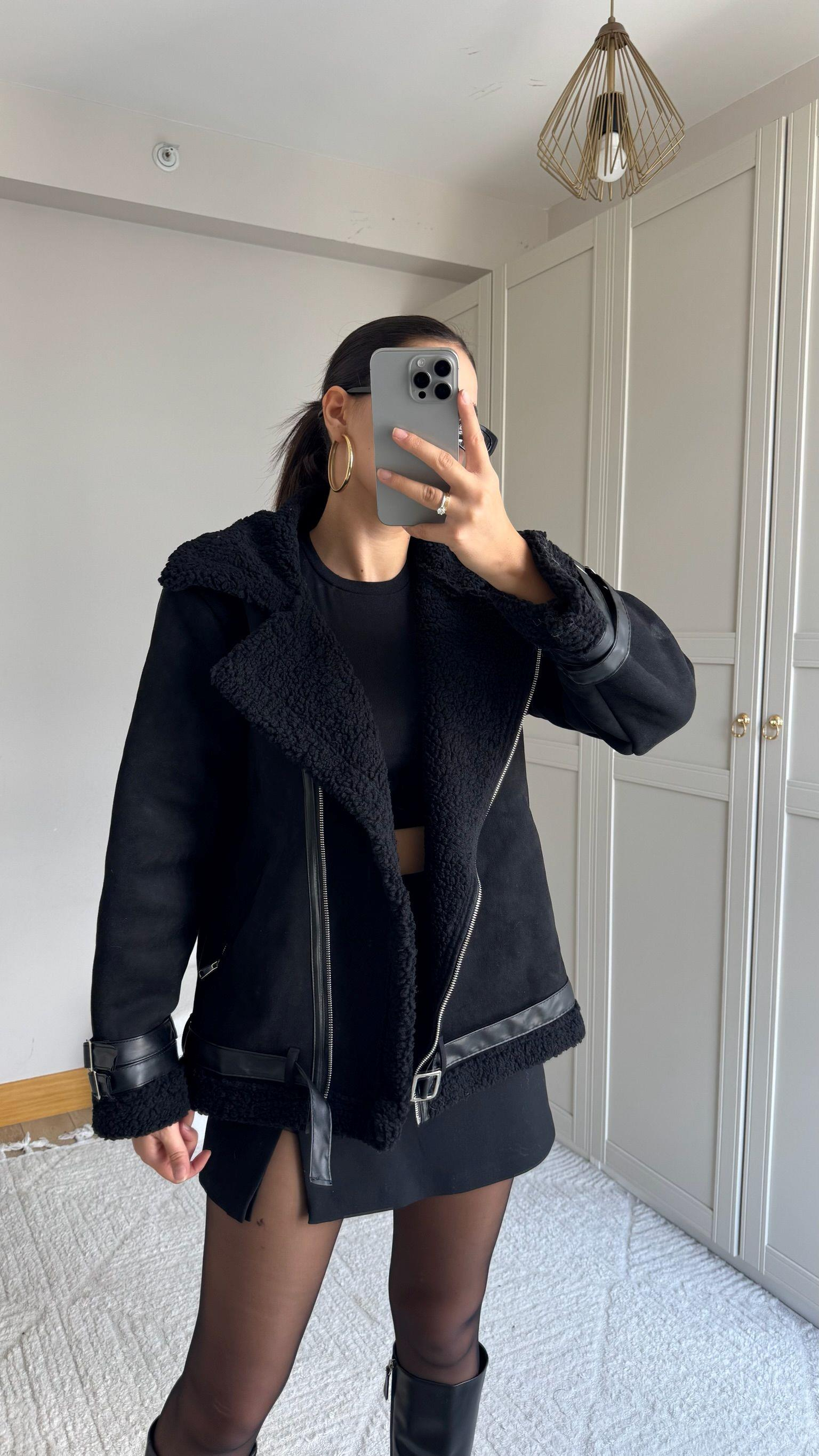 İçi Tamamen Peluş Kaplama Süet Kaban SİYAH