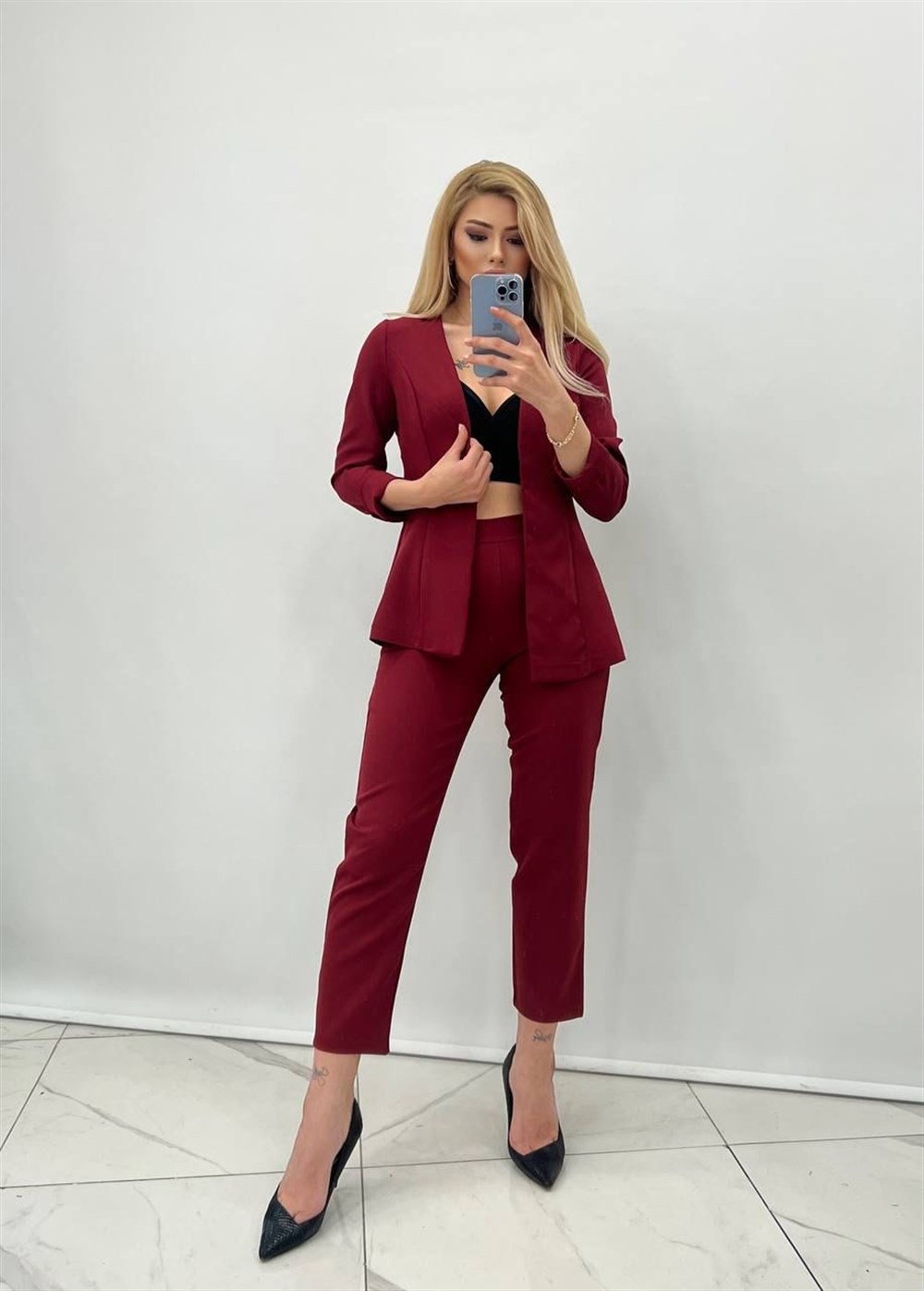 İkili Ceket Pantolon Takım BORDO