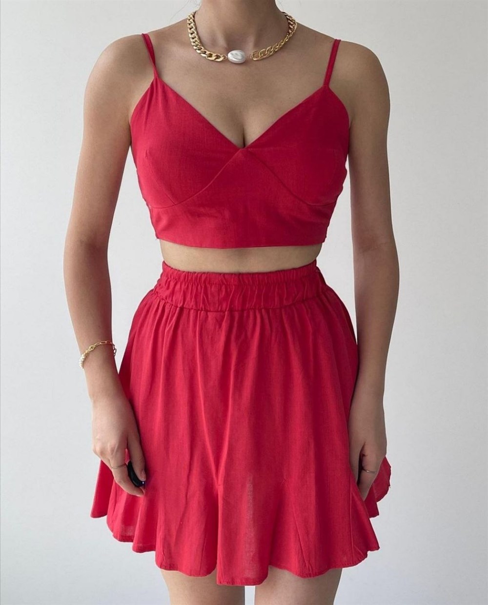 İp Askılı Etekli Takım 3993 KIRMIZI