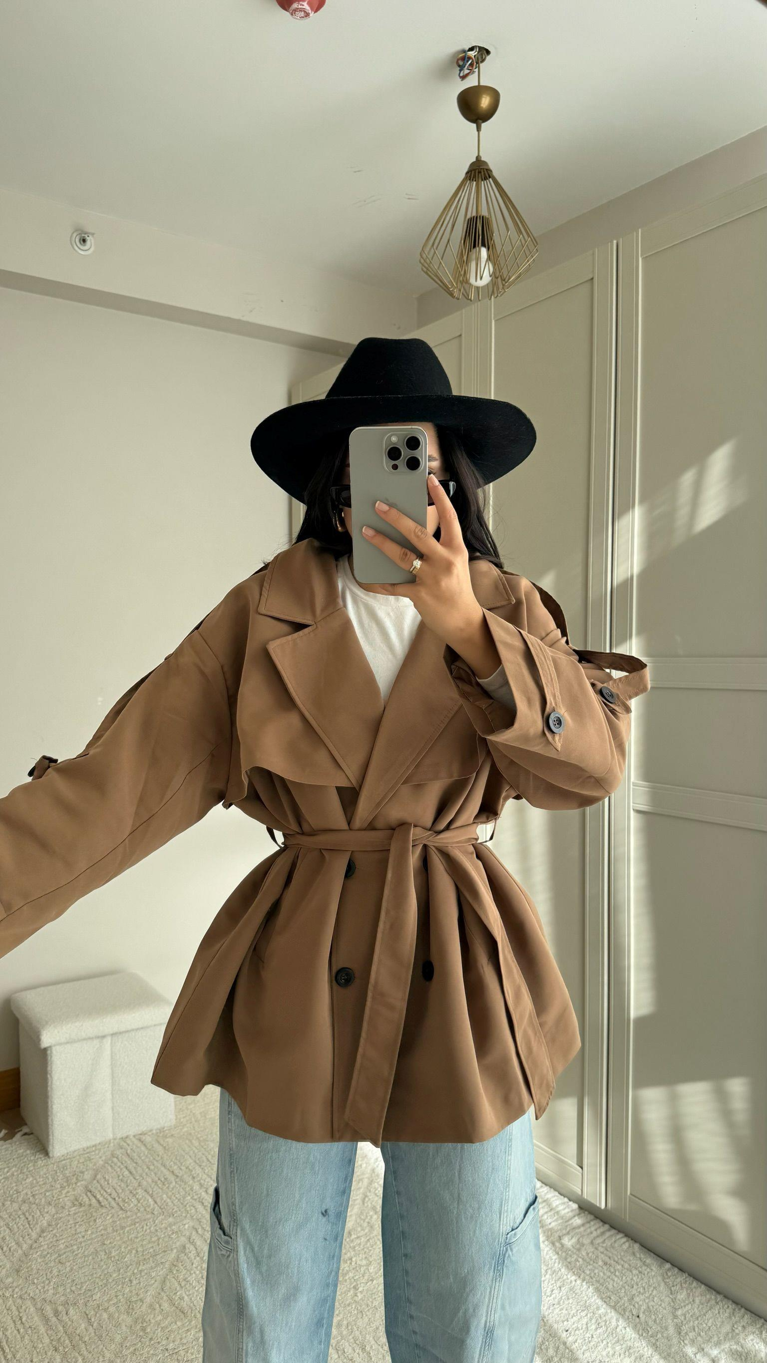 Jena Oversize Kuşaklı Düğmeli Trençkot 2635 CAMEL