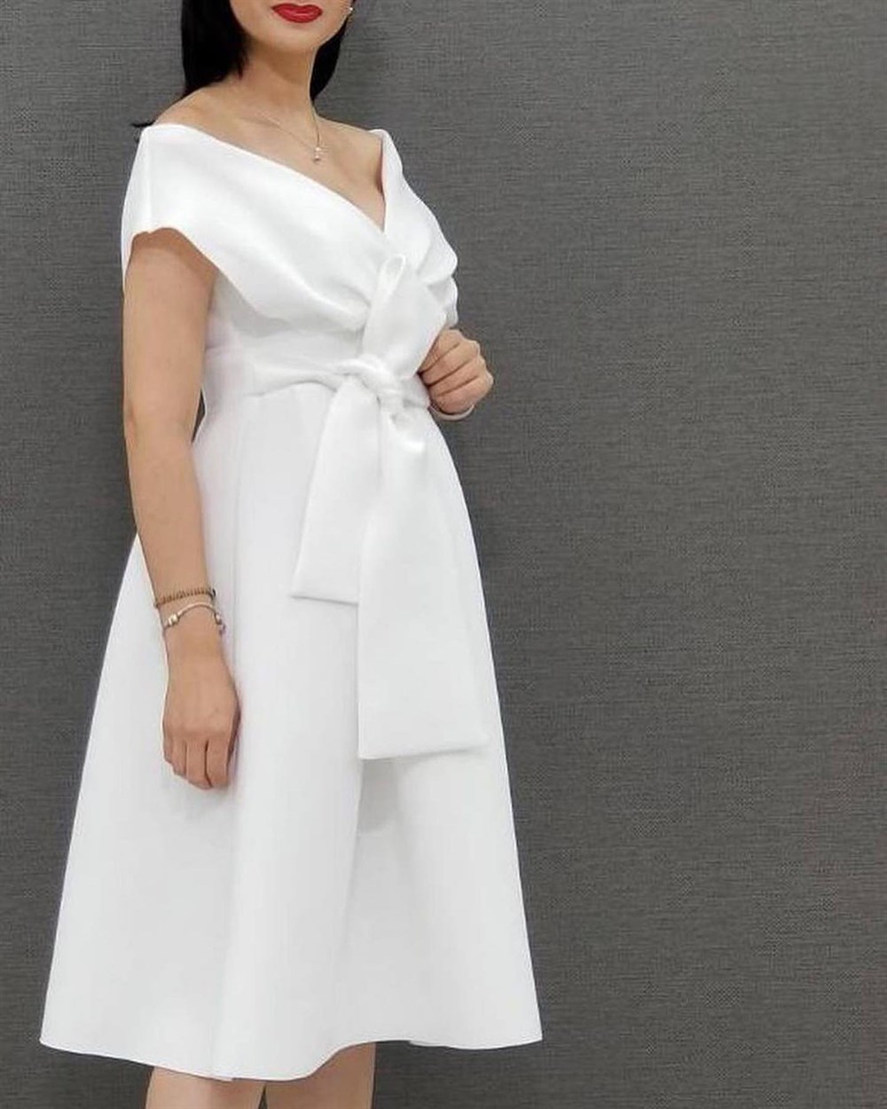 Kayık Yaka Midi Boy Elbise BEYAZ