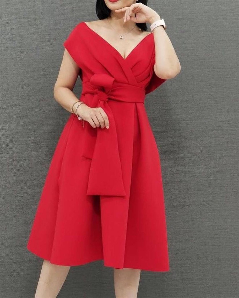 Kayık Yaka Midi Boy Elbise KIRMIZI