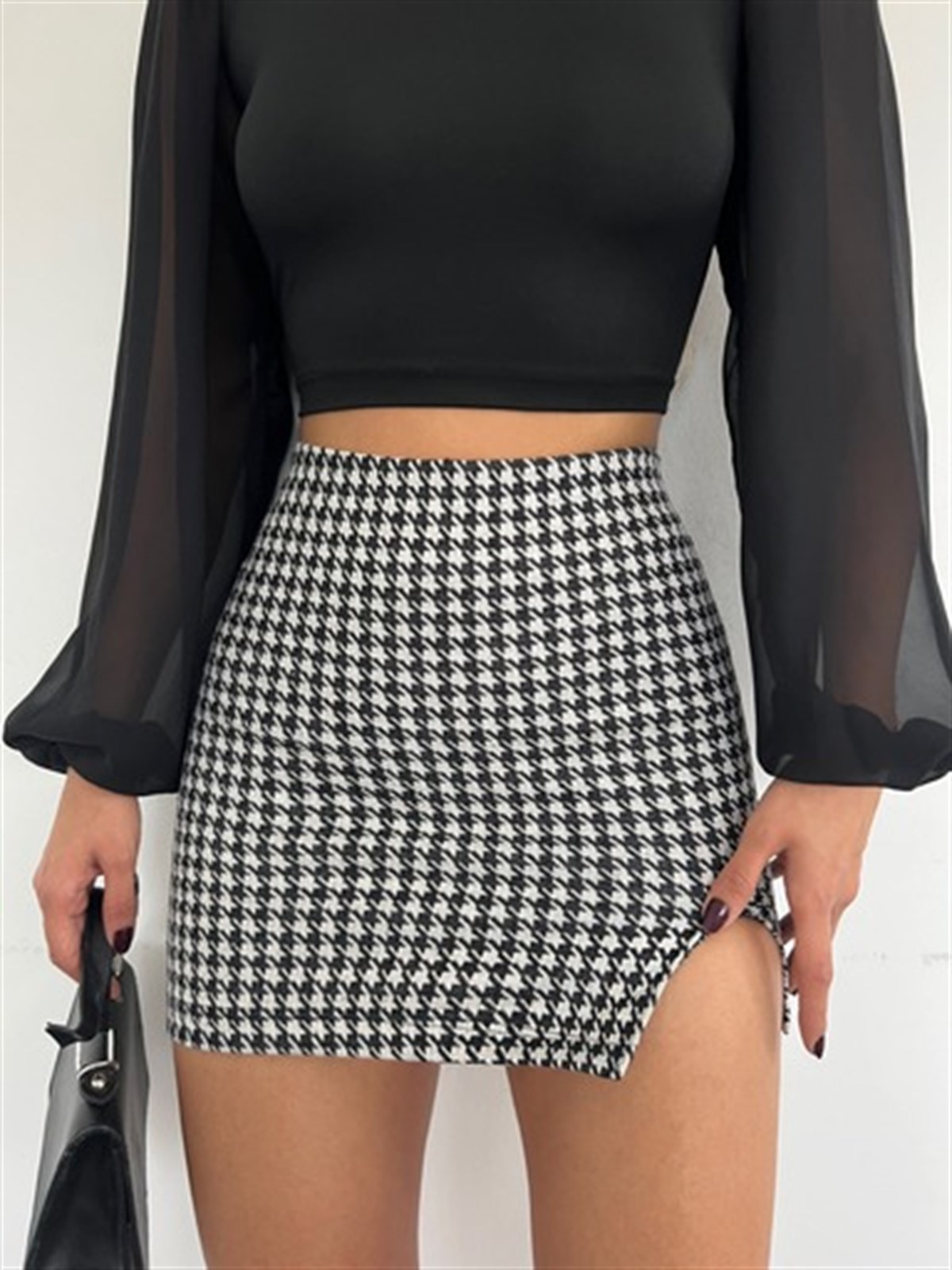 Kazayağı Desen Yırtmaçlı Etek 0025 SİYAH-BEYAZ