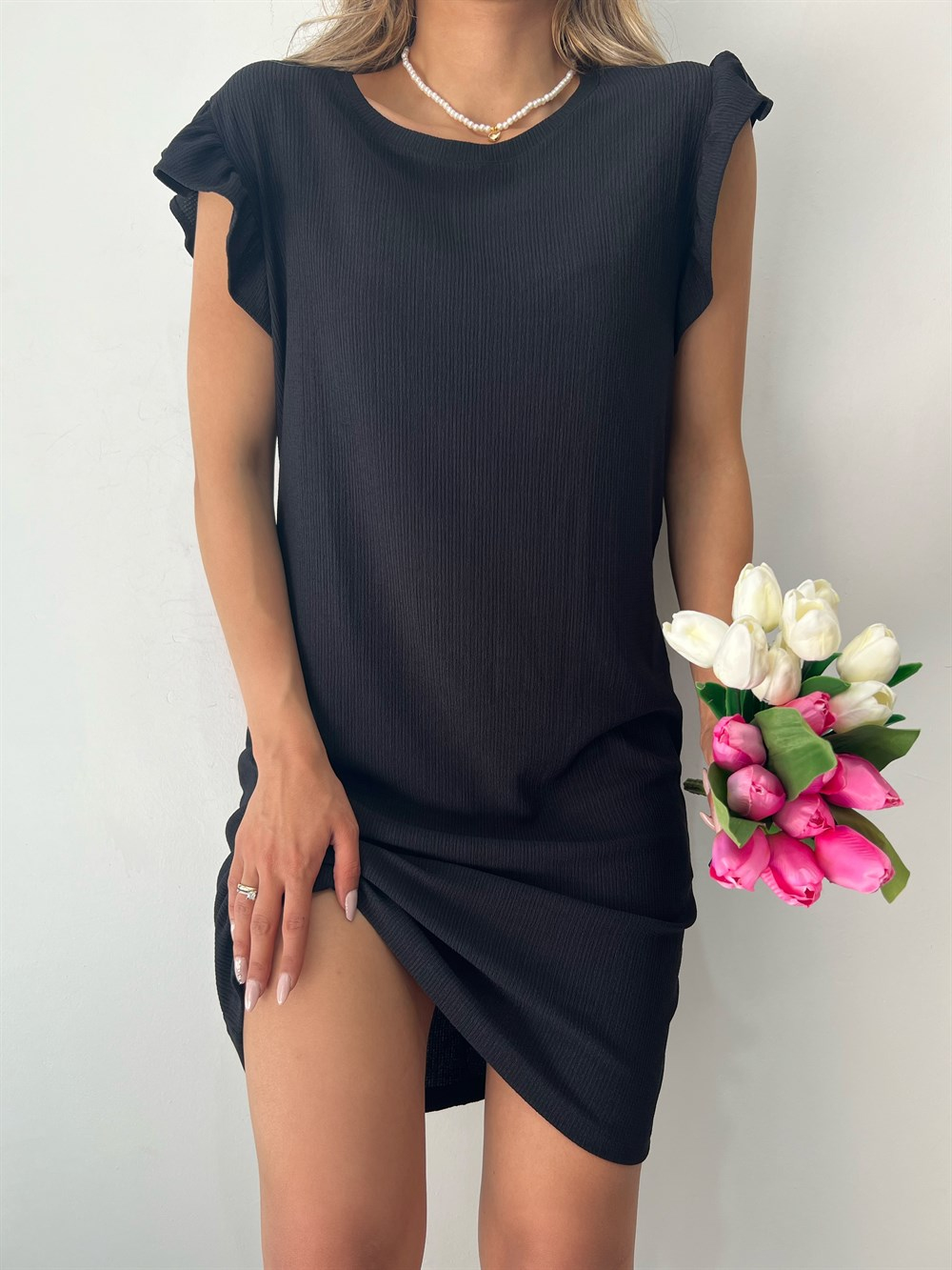 Kol Fırfırlı Yuvarlak Yaka Elbise 5301 SİYAH