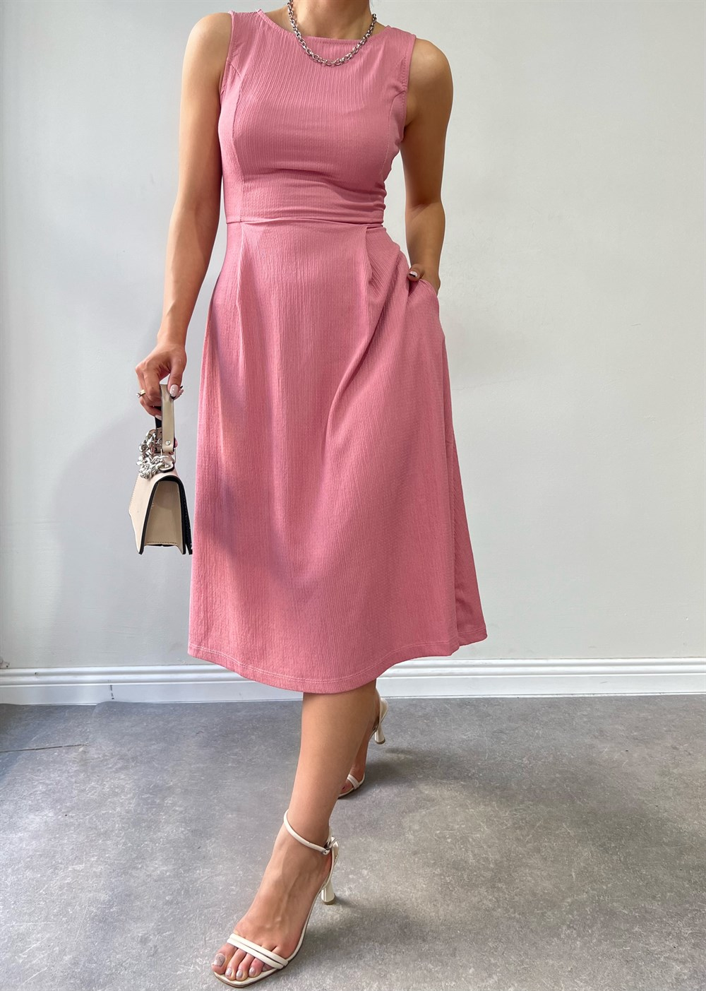 Kolsuz Gofre Cepli Elbise 2886 PUDRA