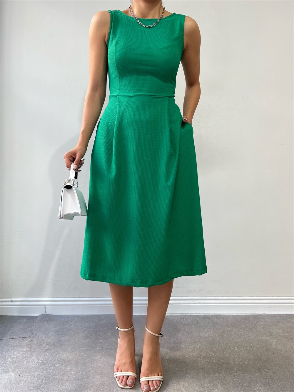 Kolsuz Gofre Cepli Elbise 2886 YEŞİL