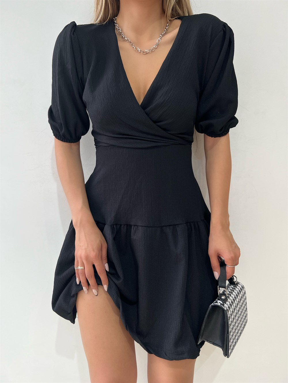 Kruvaze Gofre Elbise 2881 SİYAH