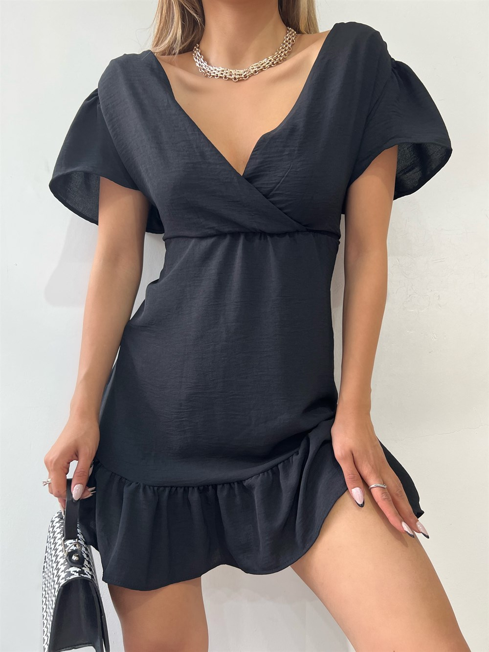 Kruvaze Volanlı Elbise 2890 SİYAH