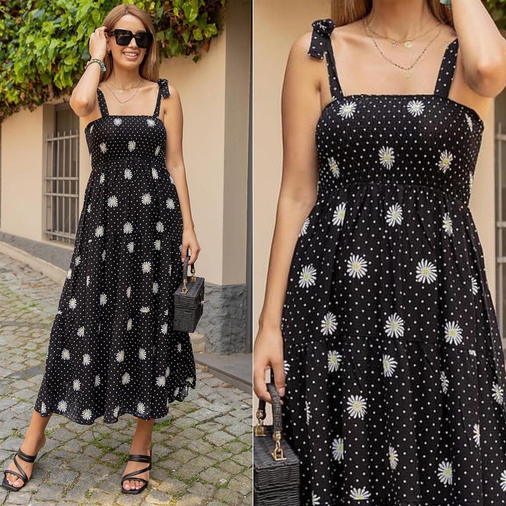 Kurdele Askı Papatya Desen Elbise PAPATYA