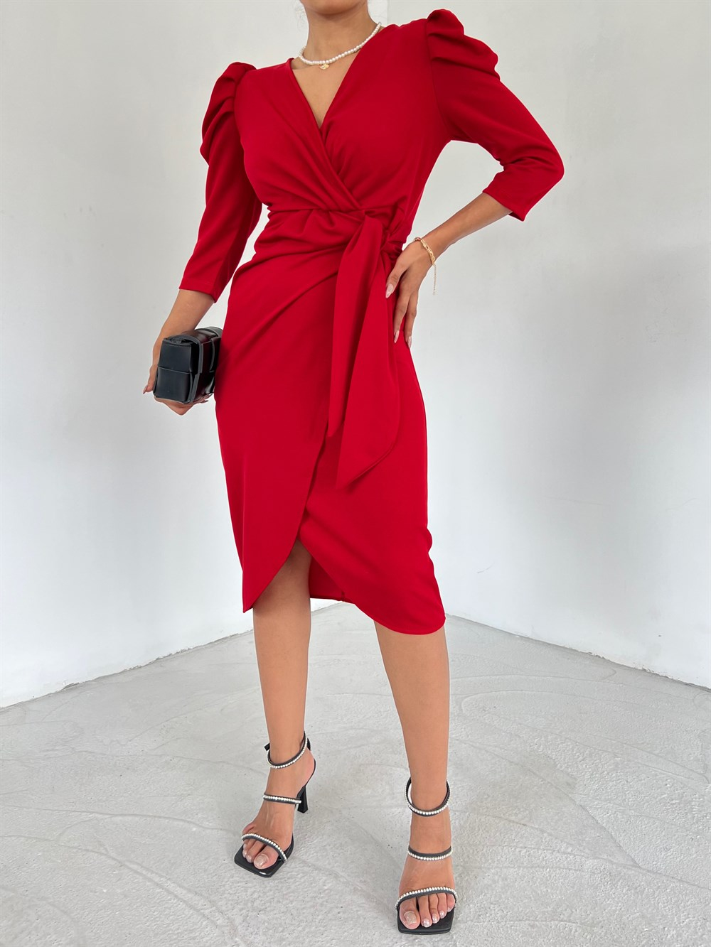 Kuşaklı Anvelop Elbise 2874 KIRMIZI