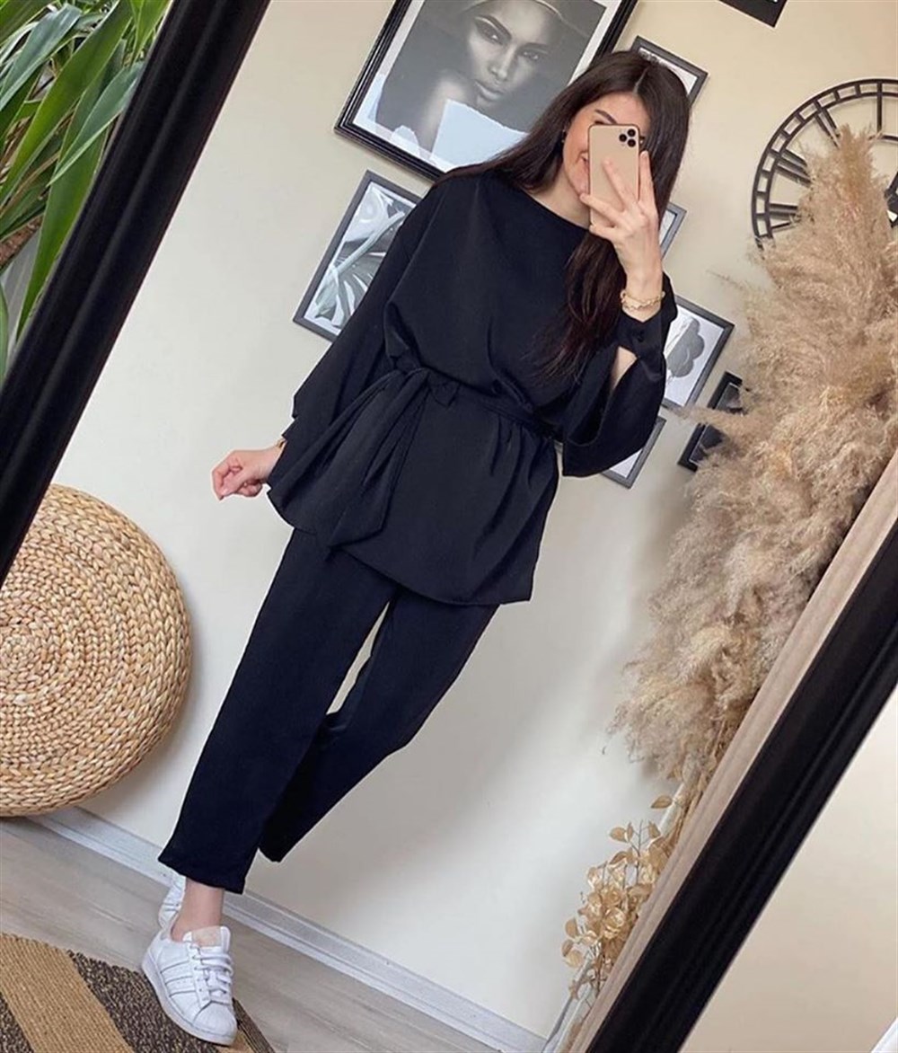 Kuşaklı Bluz Pantolon İkili Takım SİYAH