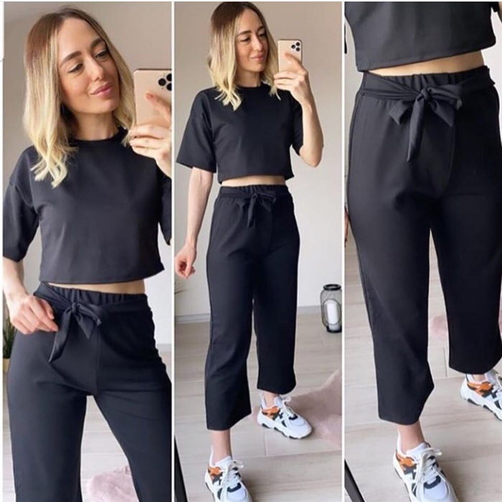 Kuşaklı İkili Takım Siyah