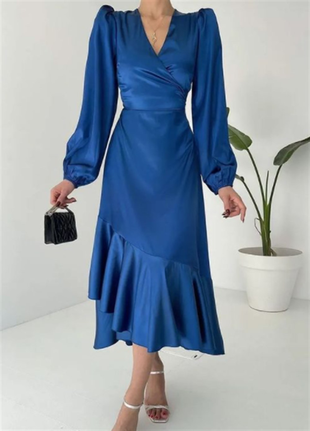 Larin Saten Elbise- 6615 SAKS MAVİSİ
