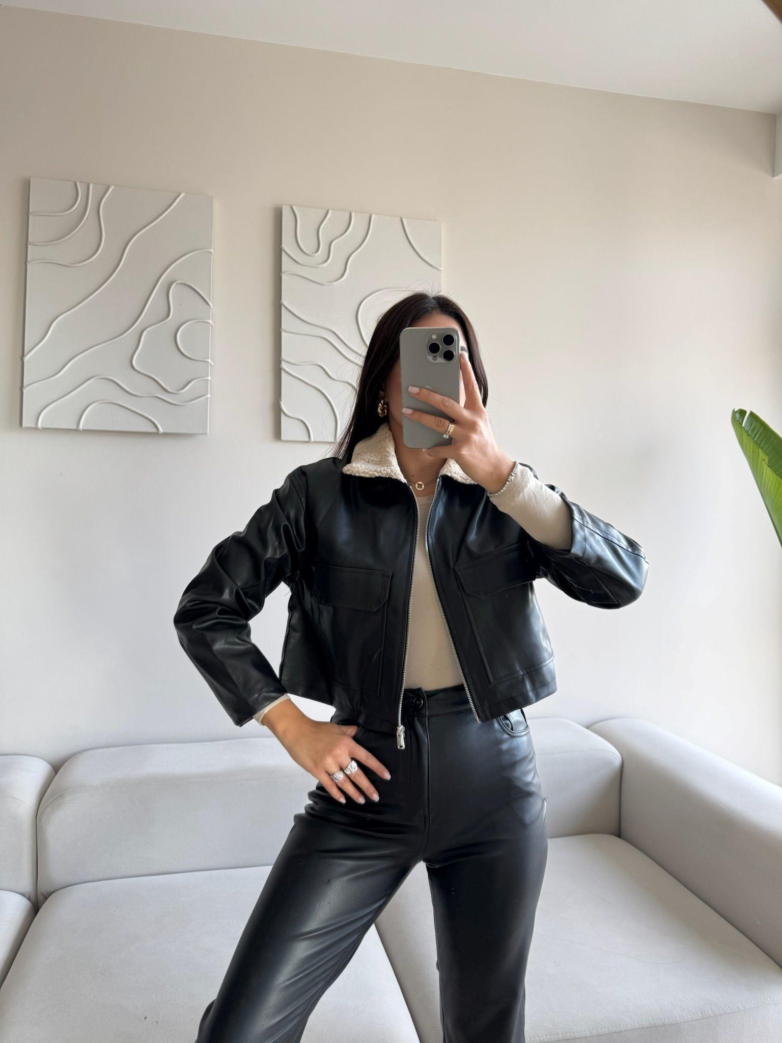 Leona Yaka Peluş Detay Ceket 2596 SİYAH