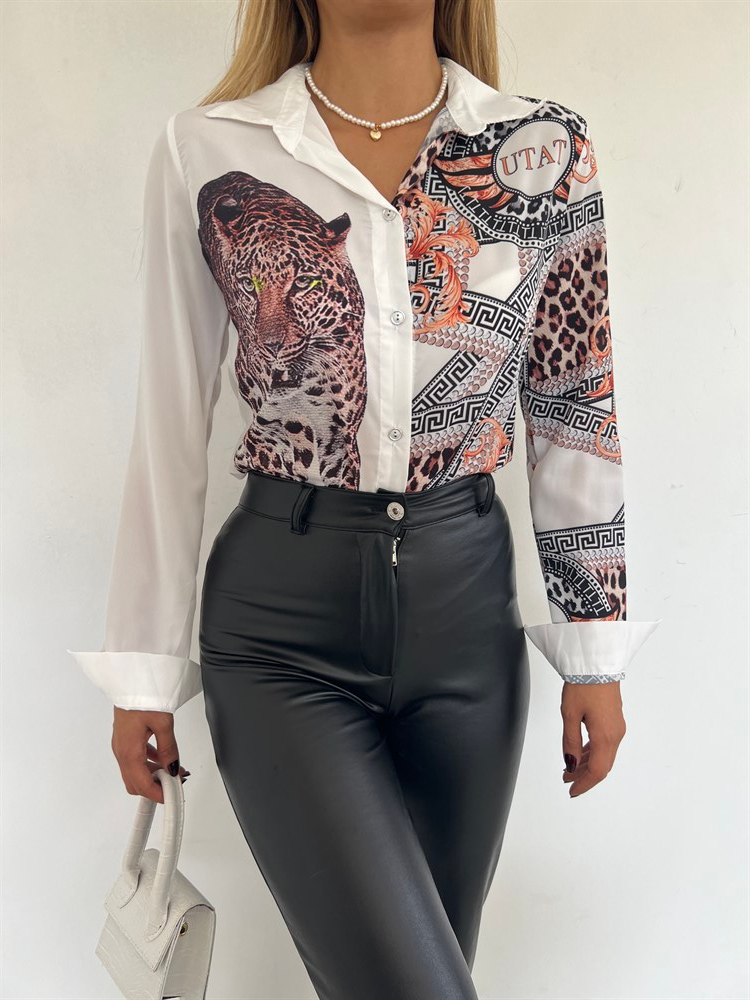 Moscrep Yarısı Desenli Gömlek 01044 EKRU