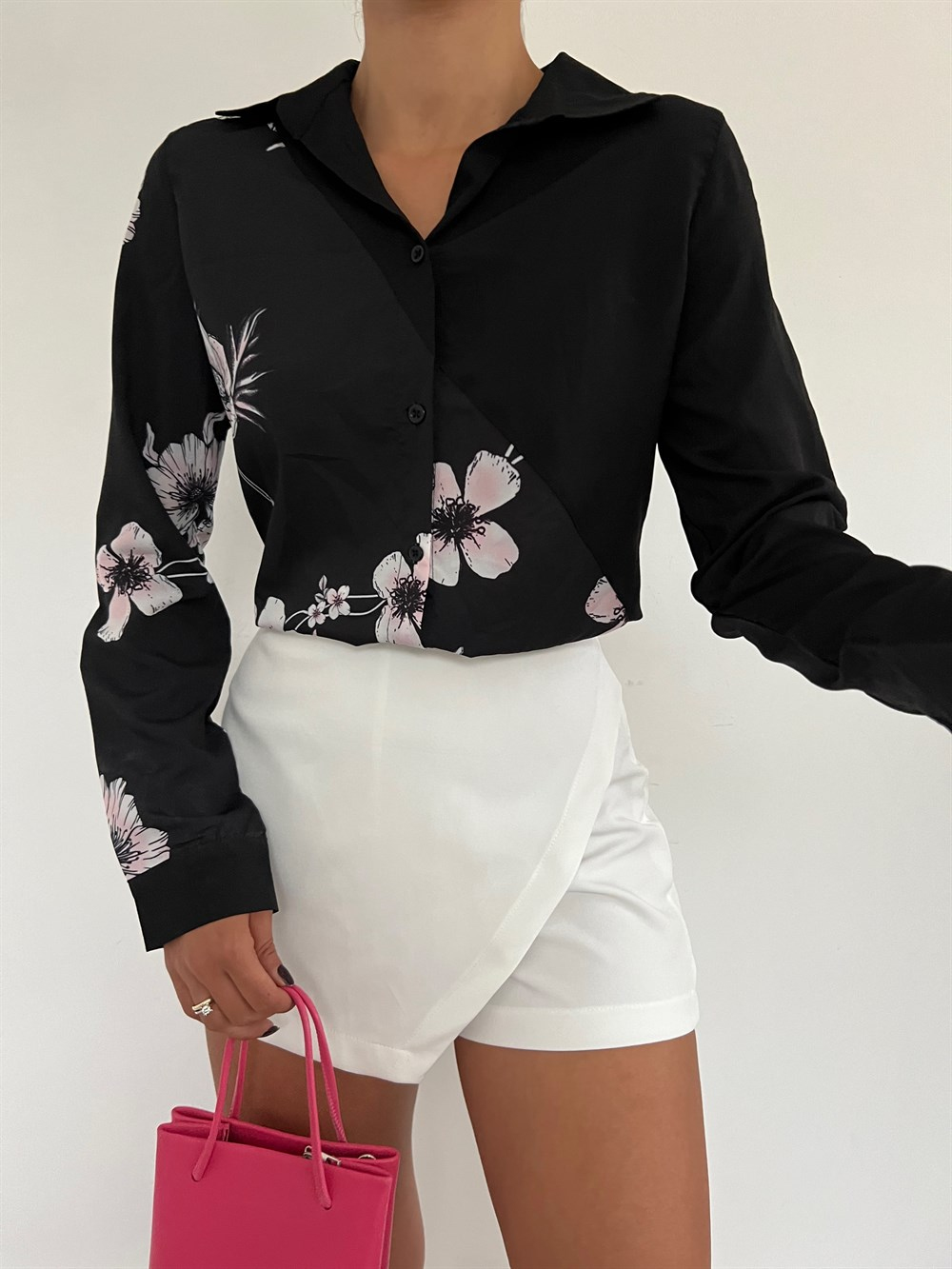 Moscrep Yarısı Desenli Gömlek 01044 SİYAH